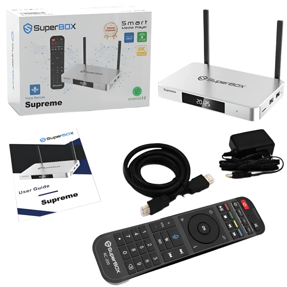 SuperBox S6 Max: 4K HD, voice assistant, 1-year warranty, plug & play, updateable, dual-band Wi-Fi & Ethernet, remote & accessories included, legal Android 12 streaming device.